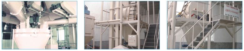 ◎Process flow is flexible. Equipped high efficient stainless double shaft mixer and pulse filter dust collector.